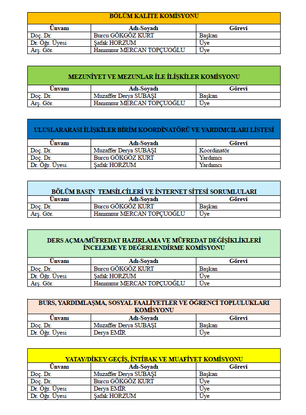 Mütercim ve tercümanlık bölüm komisyonlarımız aşağıda sunulmuştur.